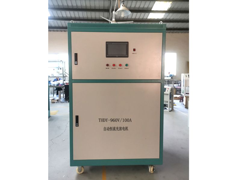 產品介紹:概述   THDY-10-系列硅整流充(放)電機,采用三相全控橋式整流;采用工業級觸摸屏,英文顯示,實時狀態,不僅具有完好的人機界面,人機對話,操作方便,顯示清晰易懂,而且功能強大,集充電、放電、循環充放、脈沖、溫度補償等多種工作模式于一體,觸摸屏選用 7 英寸;系統特點   對電網無相序要求:A、B、C 三相輸入任意接線(初步調試過程中,充電機報相序故障,任意調整2根輸入線即可);  充電中途充電連接線脫落自動關機;  充、放電參數***設置好后,如以后充、放相同的蓄電池,每次只需確認而無需重新設置;  具有脈沖充電功能(能對落后蓄電池進行激活),脈沖寬度、幅度可變、可設置;  具有溫度補償功能,即充電機可以根據環境溫度變化和蓄電池特性曲線調整充電電壓;  放電時電能反饋到電網,清潔環保;  用戶可在充、放電工作過程中對所有的參數工藝參數進行查看,避免誤操作;  具有掉電存儲功能,來電自動恢復到掉電前工作狀態,實現無人值守;  具有暫停功能,確保連續運行;  具有多種操作方式:手動操作、微機控制、觸摸屏控制、PC 機操作四種方式?! ≡摴枵麟娫醇瓤梢宰鳛槌浞烹姍C使用,也可以作為大功率電源使用。常用規格:  訂貨須知:  請注明型號,可按客戶要求電壓電流生產訂制。